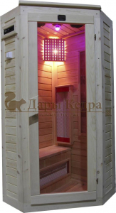 Это специально оборудованная кедровая кабина для прогрева тела человека сухим теплом. Воздух в таких парных не нагревается. Инфракрасные лучи воздействуют на тело, равномерно прогревая мышцы, суставы и органы. Керамические излучатели похожи на лампы, имеют высокую температуру нагрева, поэтому защищены противоожоговыми решетками. Тело человека в таких саунах нагревается интенсивнее. Работает кабина за счет электричества. Установка сауны в угол, позволяет рационально использовать пространство помещения. Подходит как для домашнего использования, так и для коммерции.